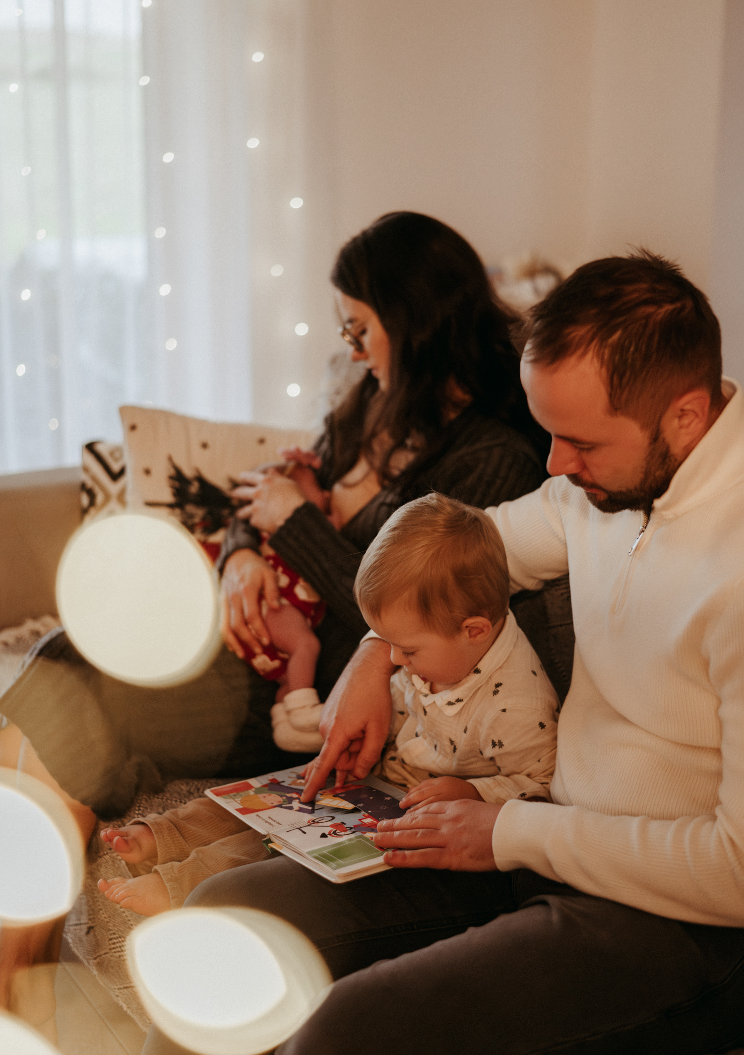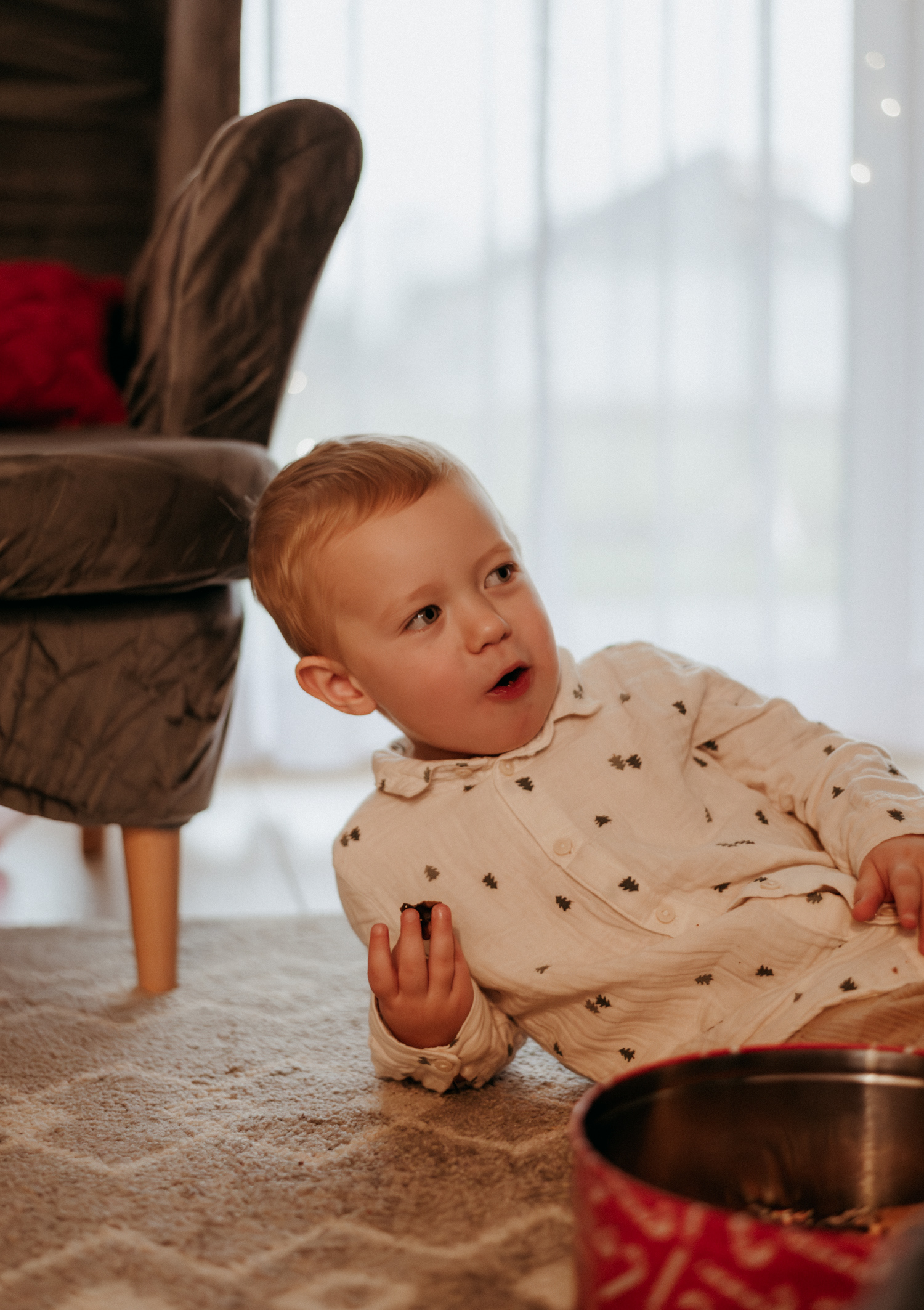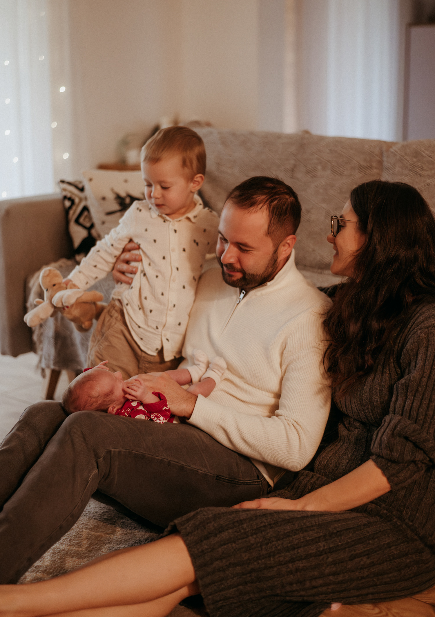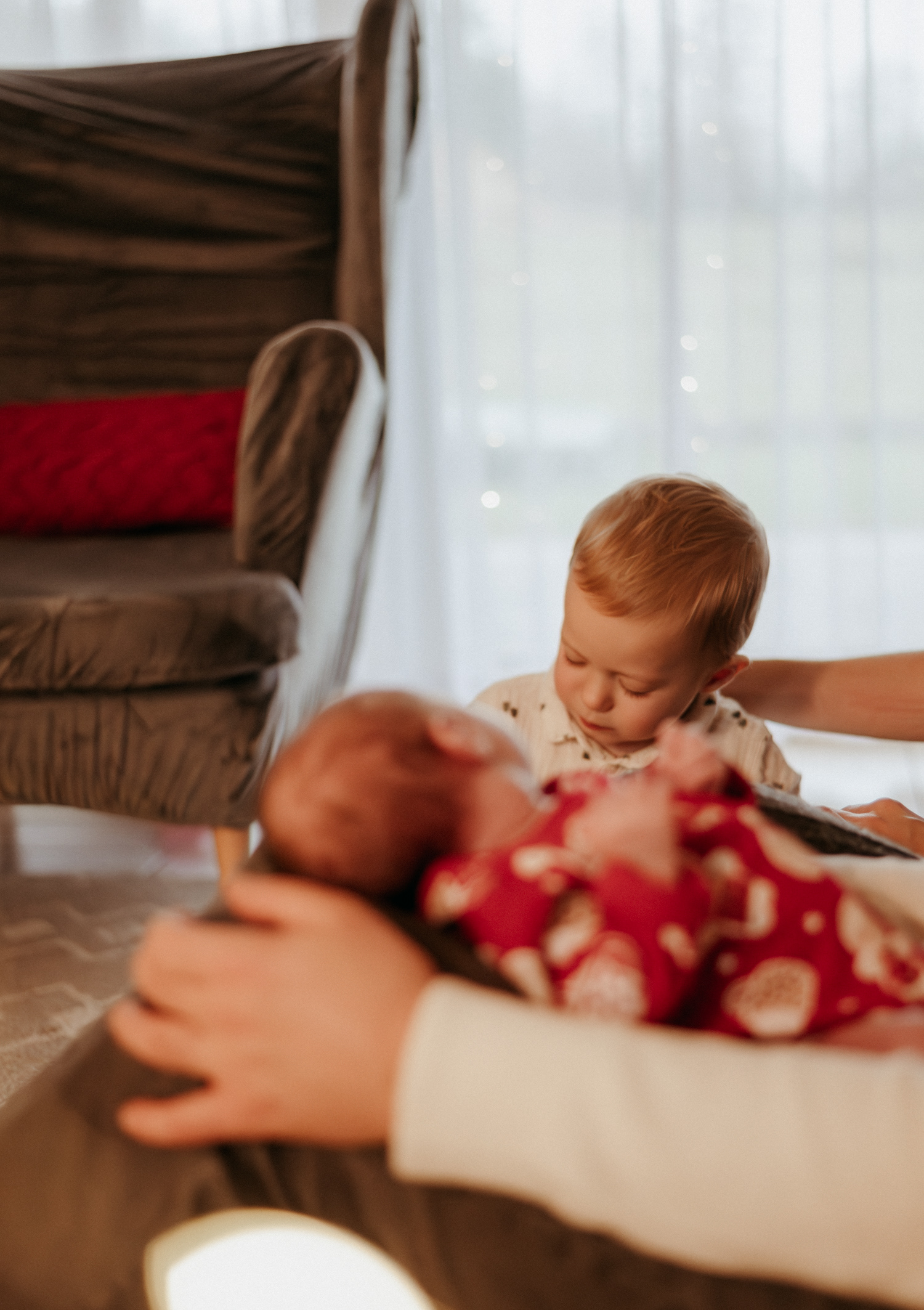 Ta domowa sesja noworodkowa odbyła się w świątecznym klimacie, w Tarnowskich Górach. W rolach głównych: malutka dziewczynka, starszy brat i rodzice. Było ciepło, przytulnie i naturalnie mimo mroku za oknem – bez pozowania i bez stresu. W rytmie dzieci. W sesjach rodzinnych w stylu lifestyle najważniejsze jest to, żeby każdy czuł się dobrze. Nie trzeba się uśmiechać na zawołanie – można czytać książkę, jeść pierniki, tulić noworodka, po prostu być razem. Takie sesje to zapis codziennych, prawdziwych chwil – i właśnie za to je kocham.