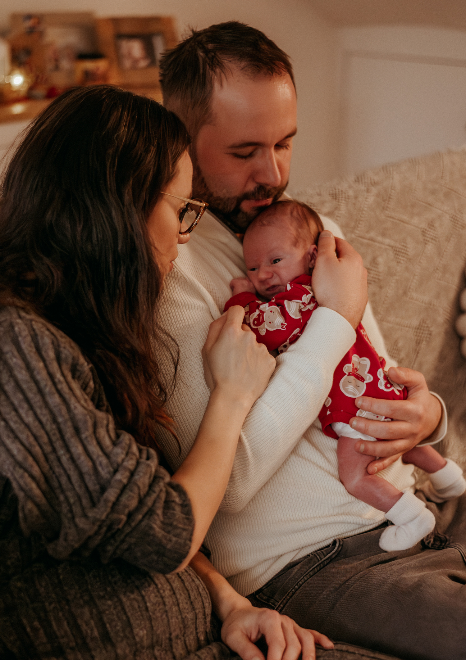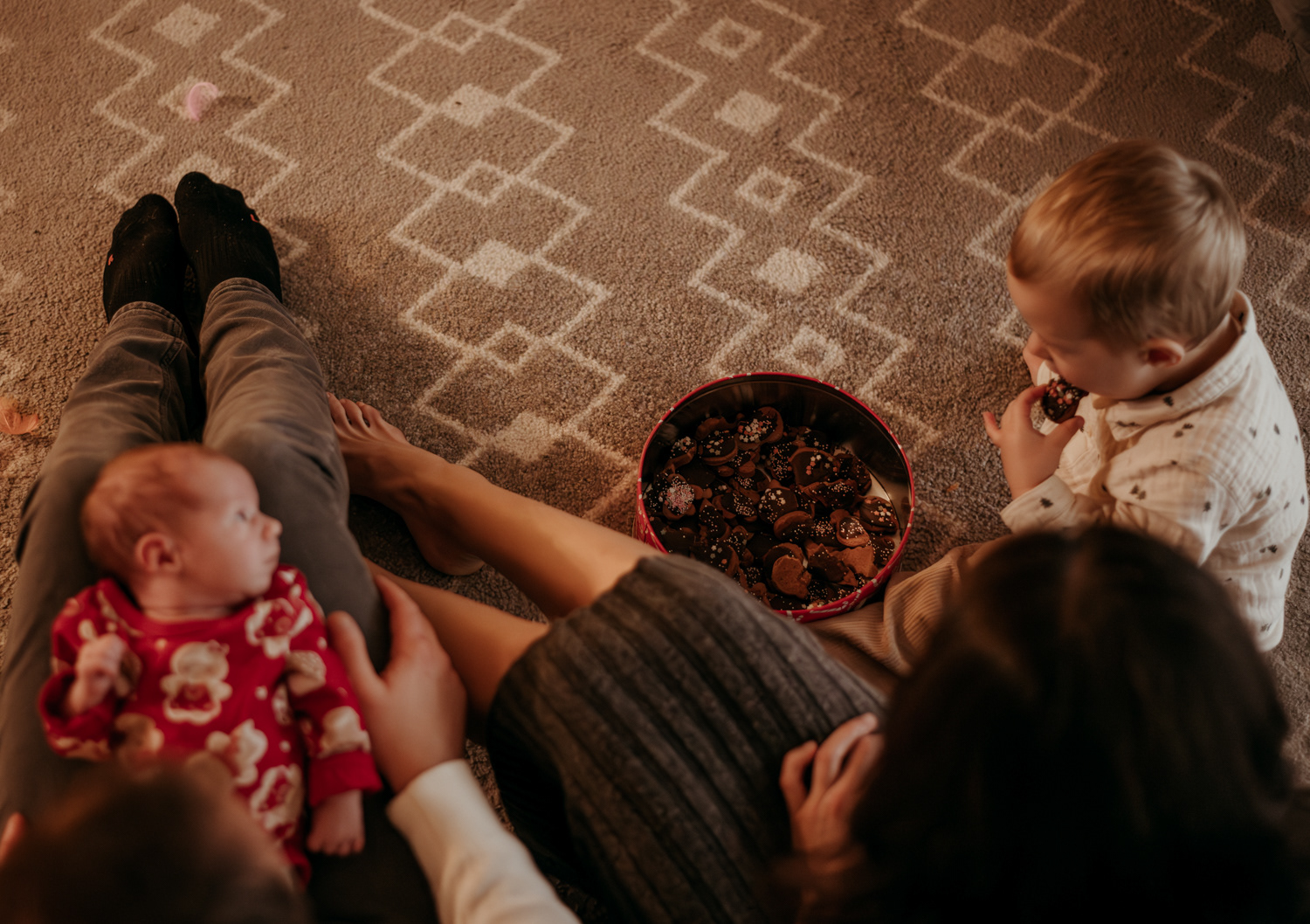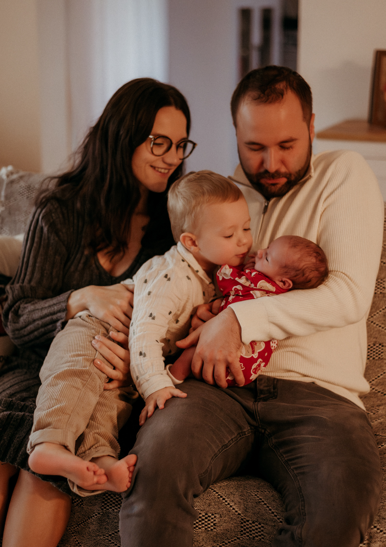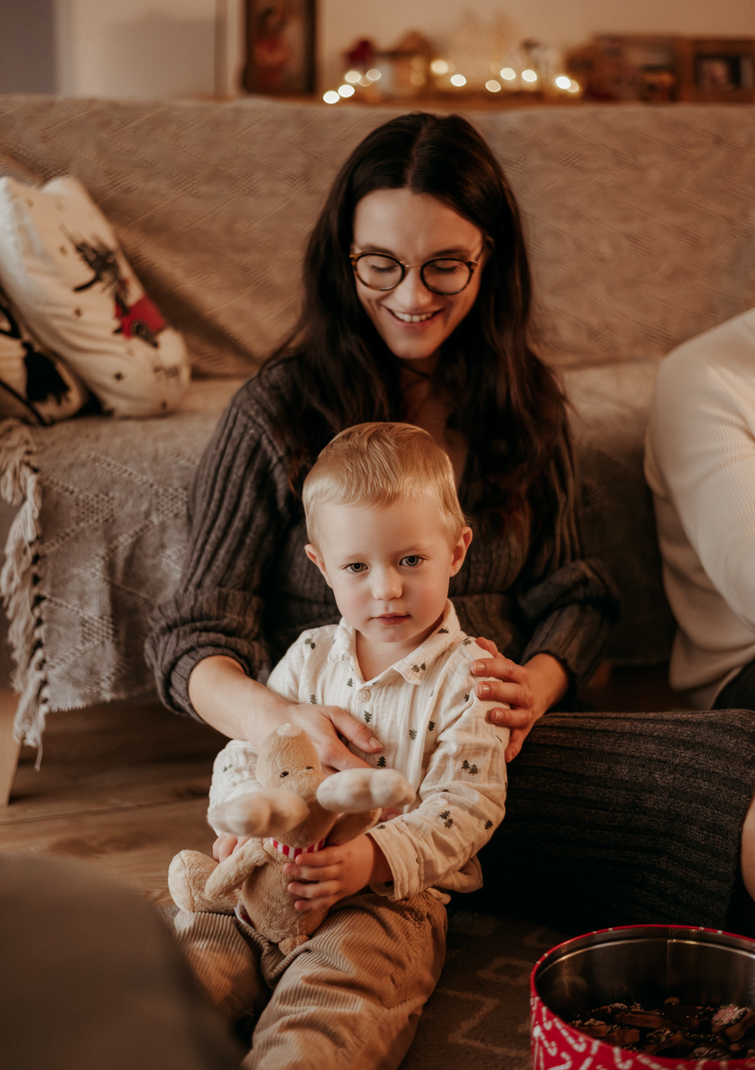 Ta domowa sesja noworodkowa odbyła się w świątecznym klimacie, w Tarnowskich Górach. W rolach głównych: malutka dziewczynka, starszy brat i rodzice. Było ciepło, przytulnie i naturalnie mimo mroku za oknem – bez pozowania i bez stresu. W rytmie dzieci. W sesjach rodzinnych w stylu lifestyle najważniejsze jest to, żeby każdy czuł się dobrze. Nie trzeba się uśmiechać na zawołanie – można czytać książkę, jeść pierniki, tulić noworodka, po prostu być razem. Takie sesje to zapis codziennych, prawdziwych chwil – i właśnie za to je kocham.