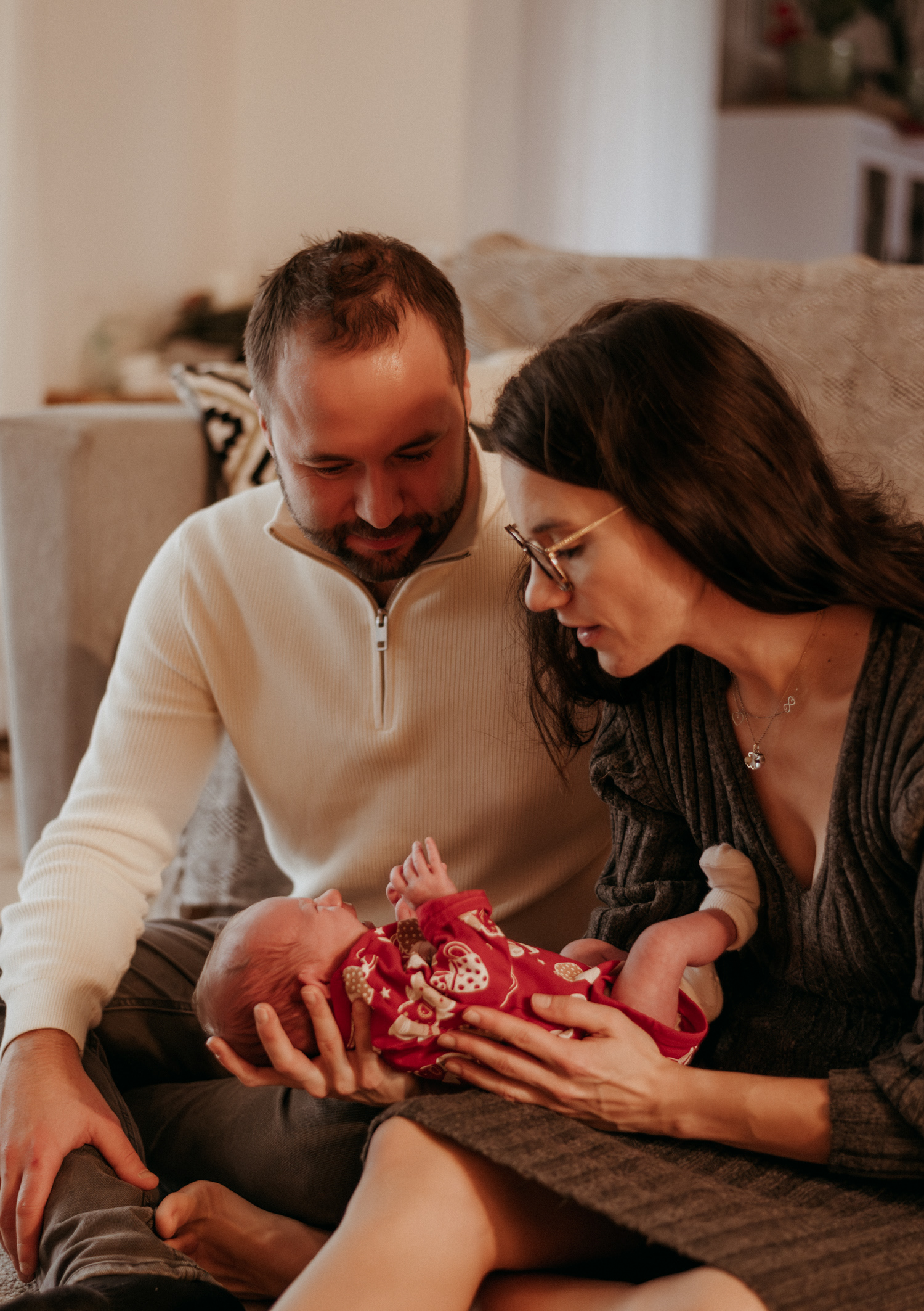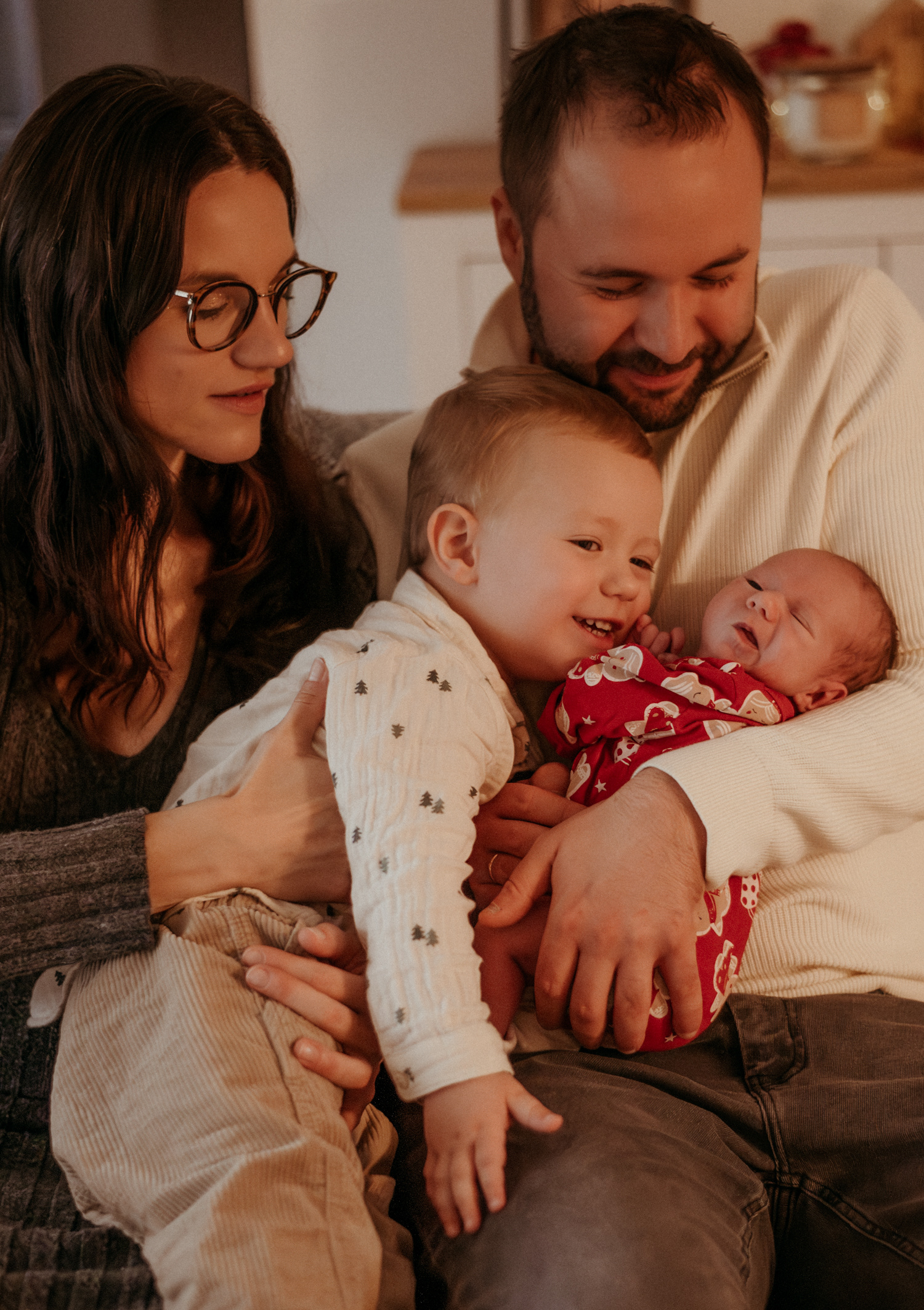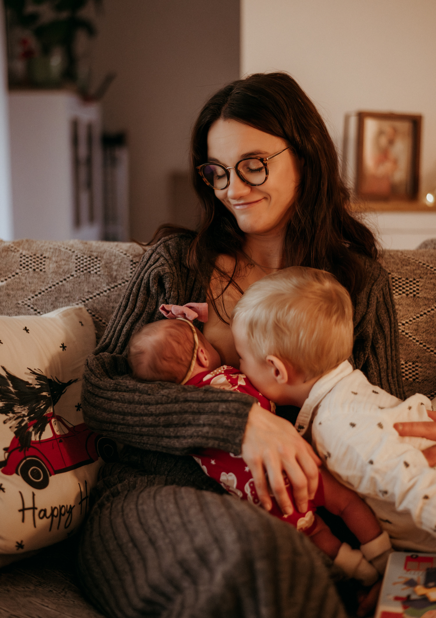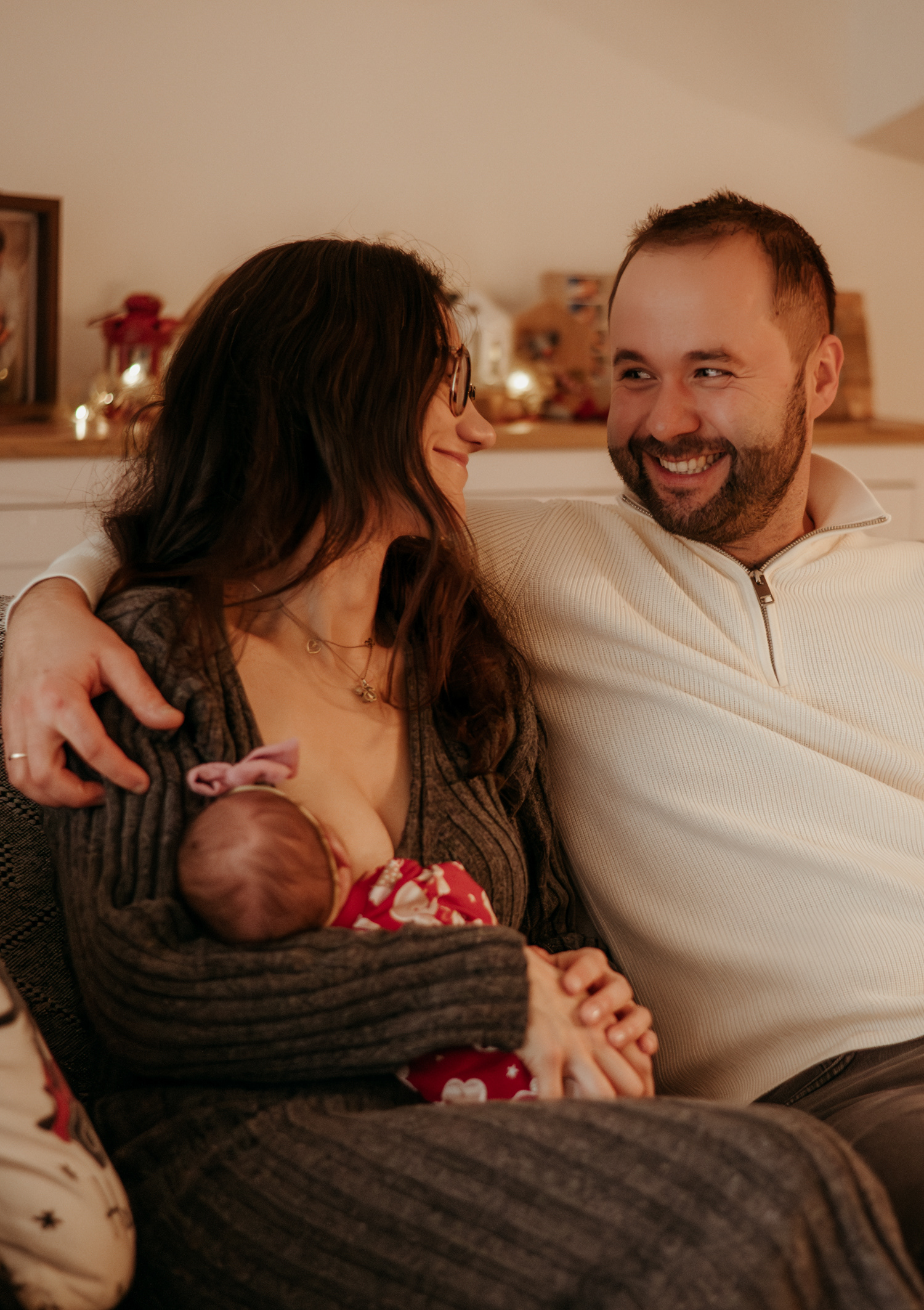 Ta domowa sesja noworodkowa odbyła się w świątecznym klimacie, w Tarnowskich Górach. W rolach głównych: malutka dziewczynka, starszy brat i rodzice. Było ciepło, przytulnie i naturalnie mimo mroku za oknem – bez pozowania i bez stresu. W rytmie dzieci. W sesjach rodzinnych w stylu lifestyle najważniejsze jest to, żeby każdy czuł się dobrze. Nie trzeba się uśmiechać na zawołanie – można czytać książkę, jeść pierniki, tulić noworodka, po prostu być razem. Takie sesje to zapis codziennych, prawdziwych chwil – i właśnie za to je kocham.