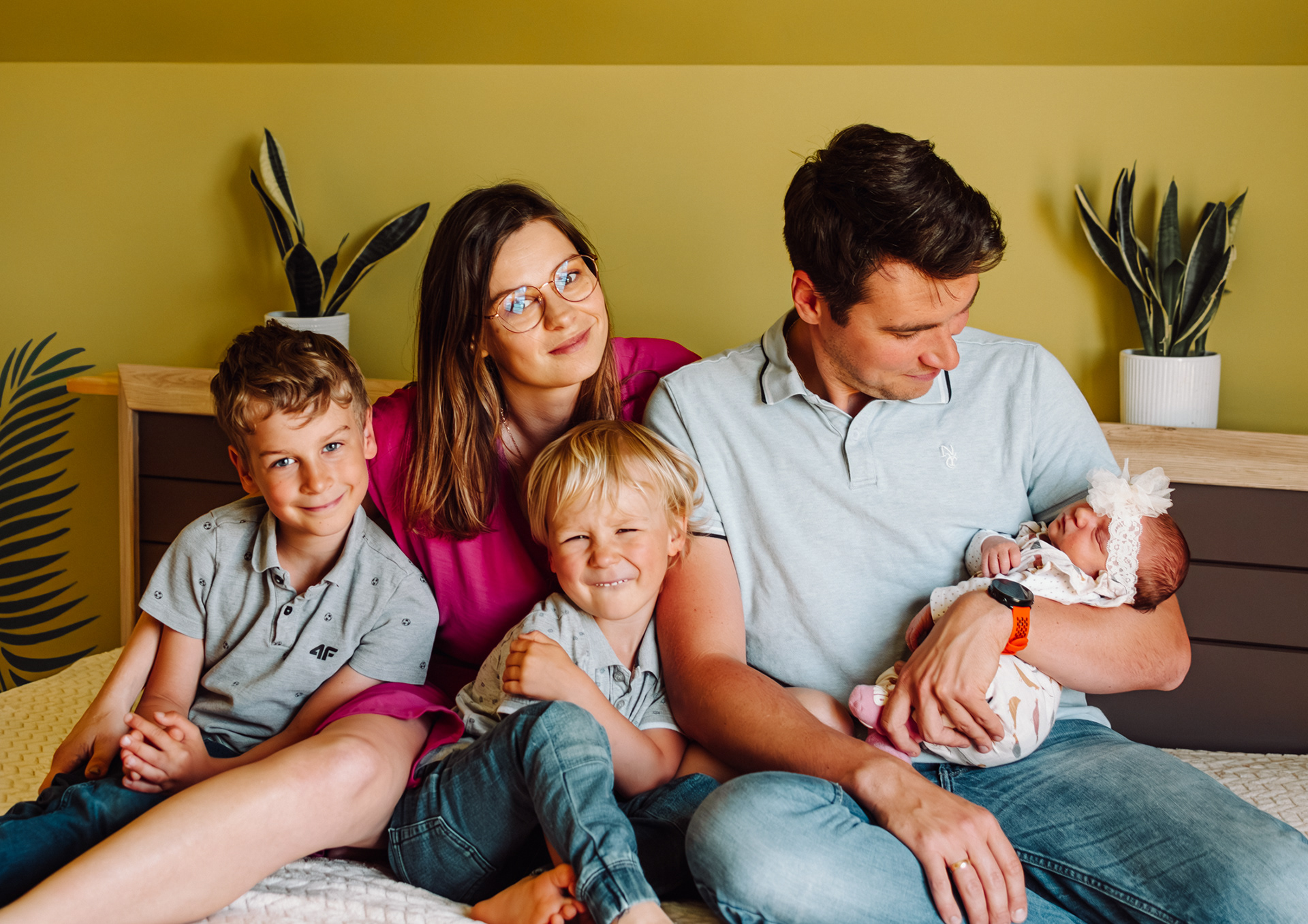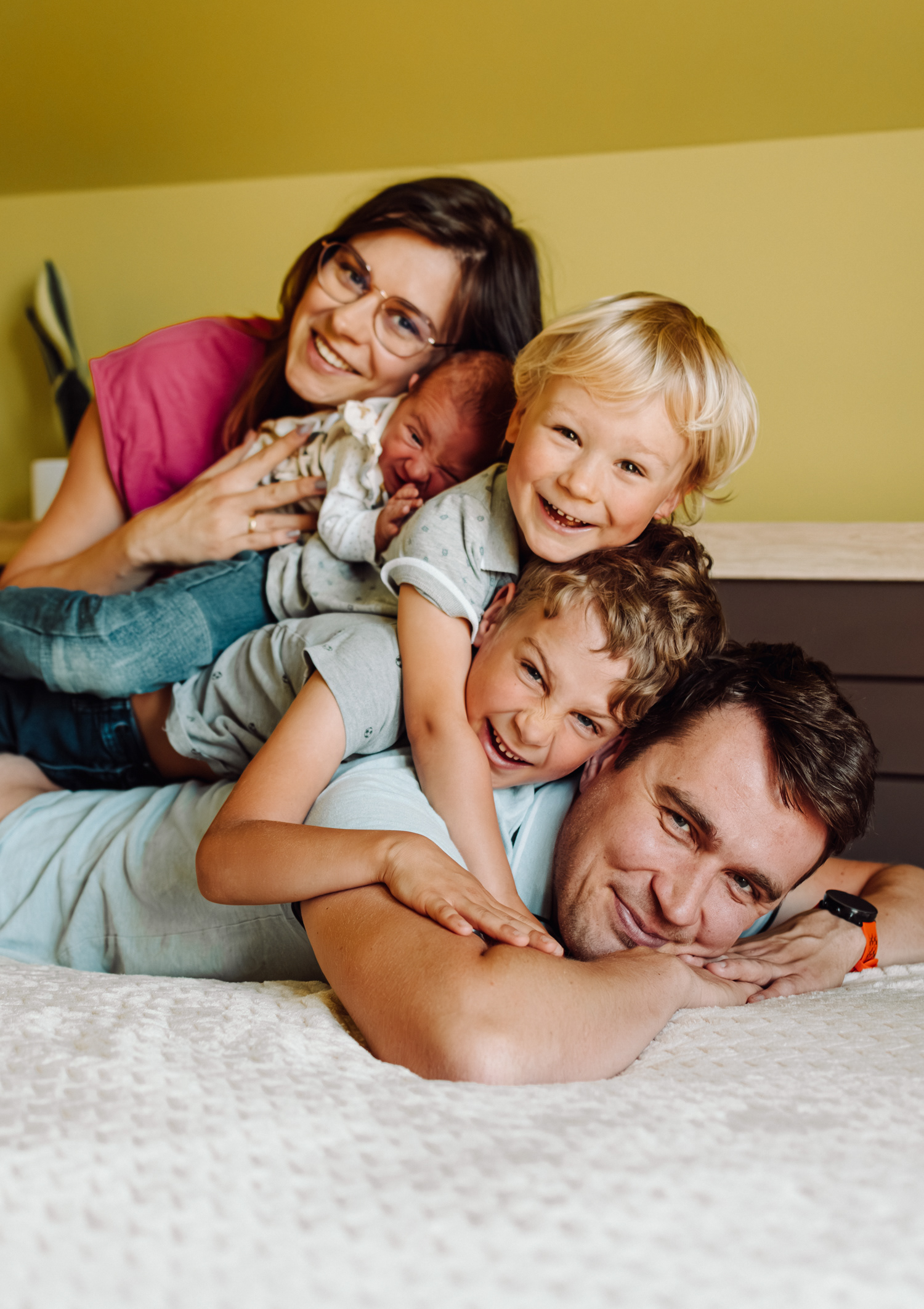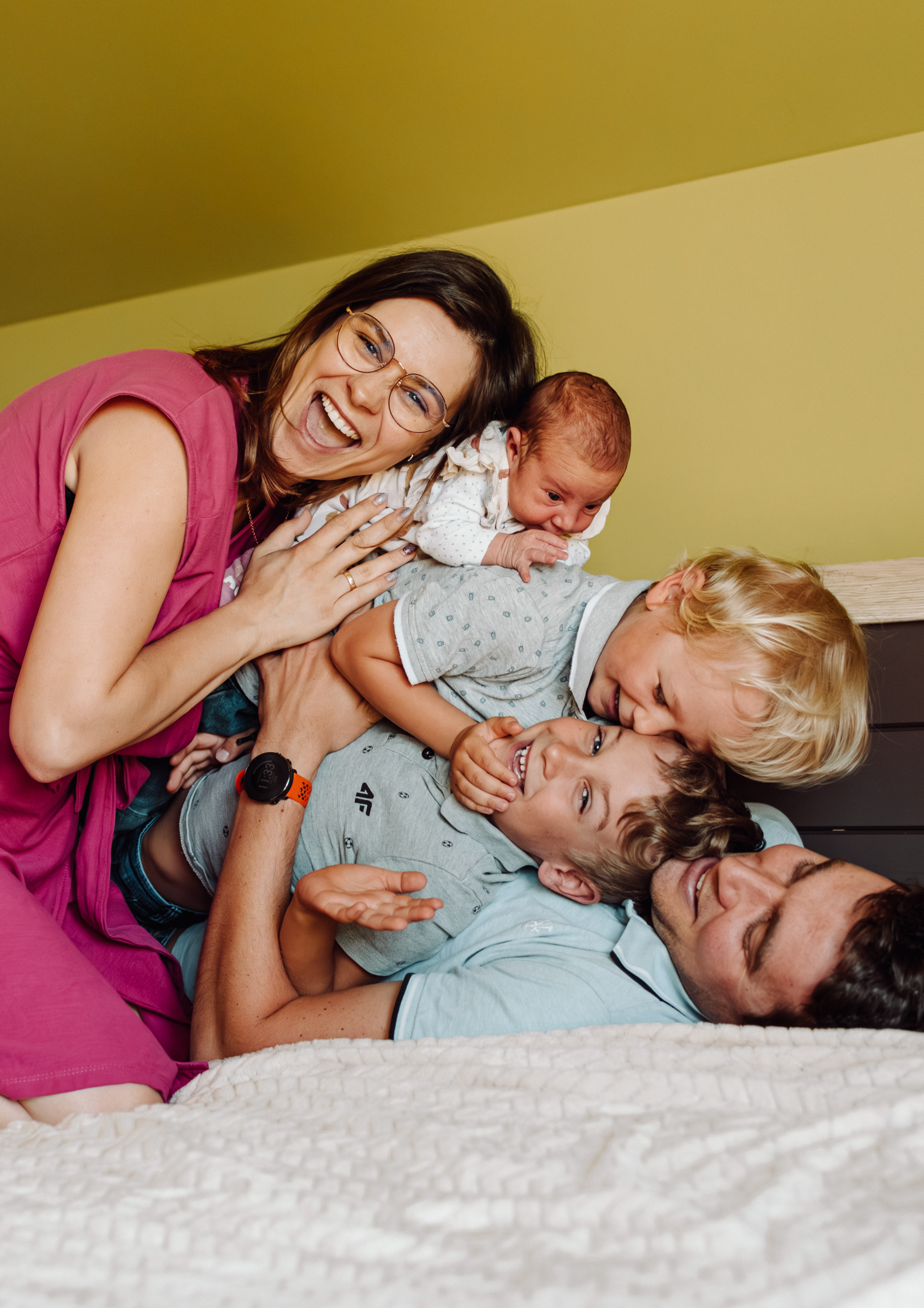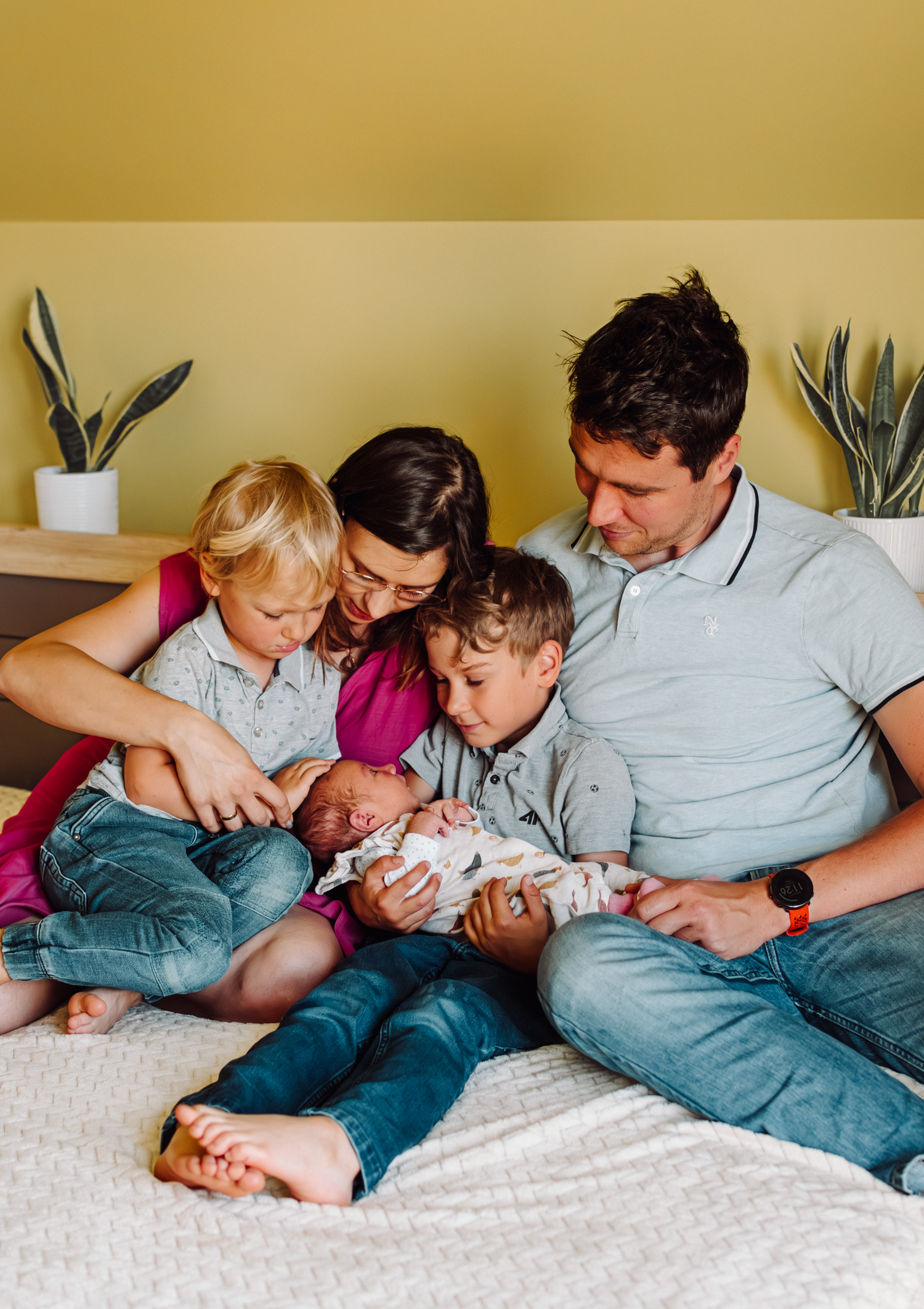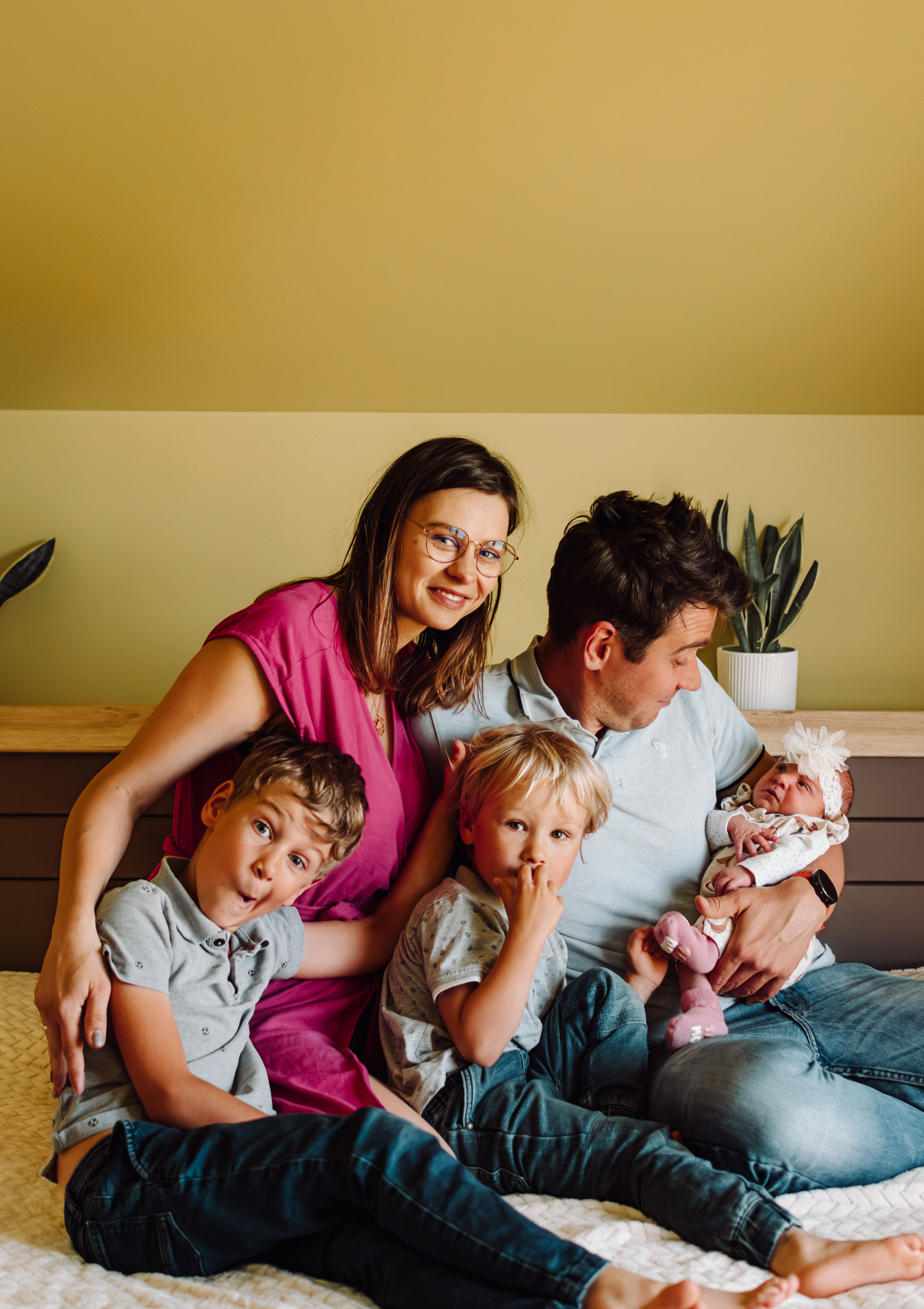Sesja noworodkowa i starsze rodzeństwo? Proszę bardzo! To piękne kadry pełne energii - jednak tutaj rządzi starsze rodzeństwo.