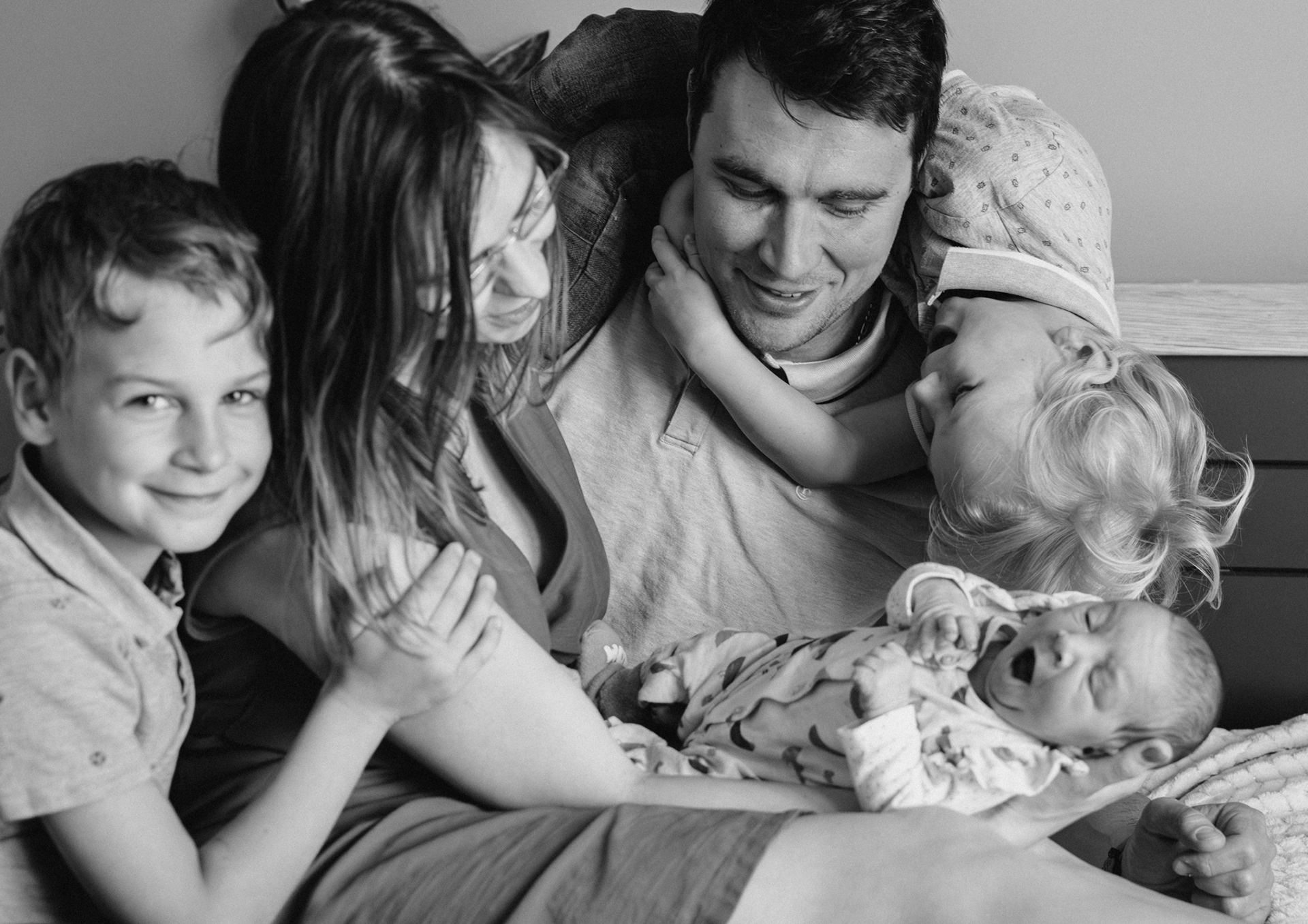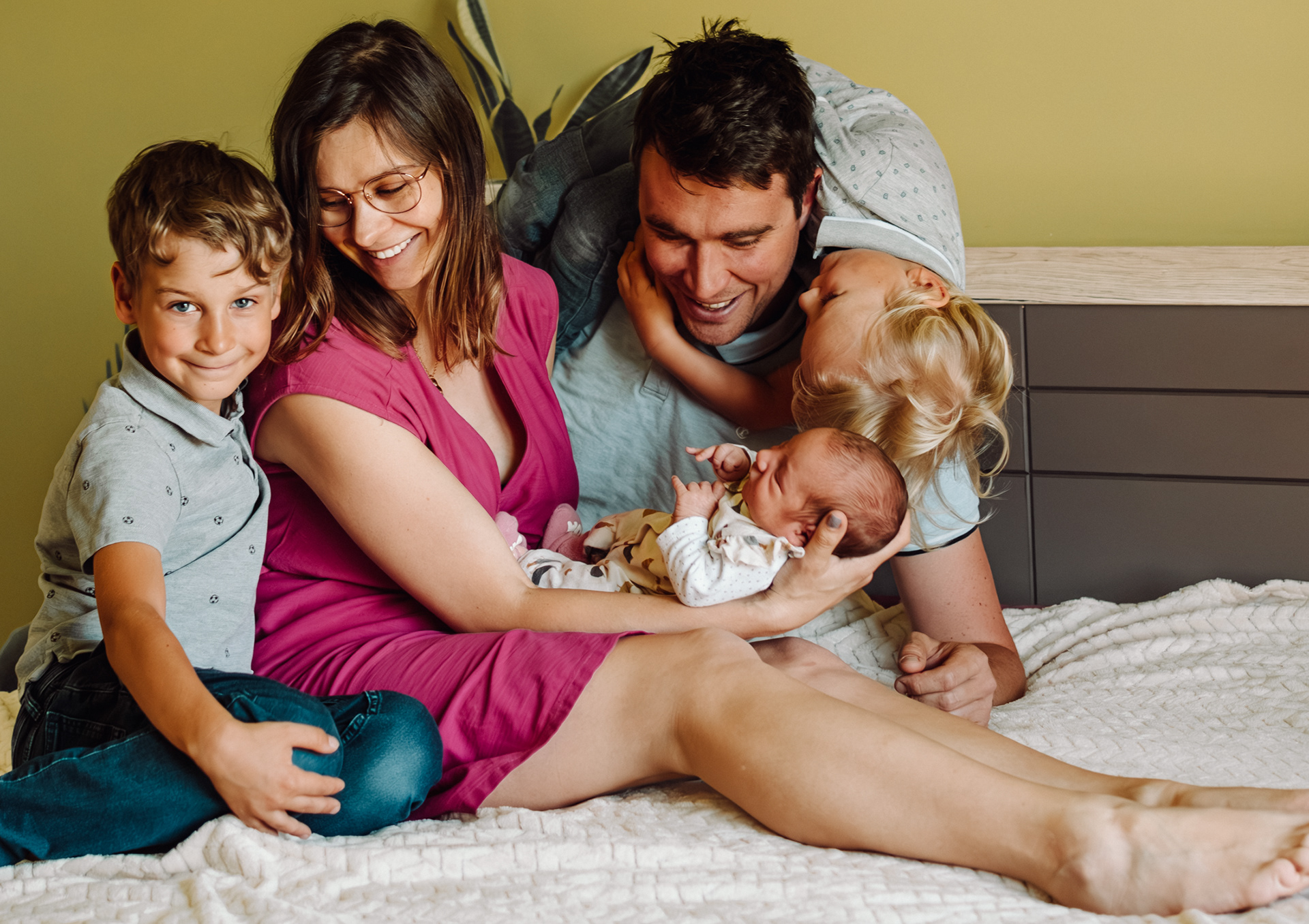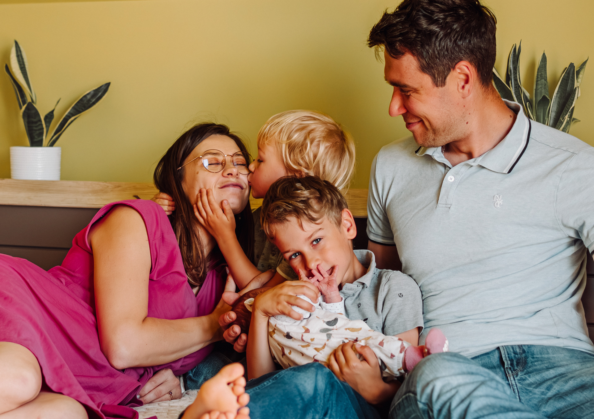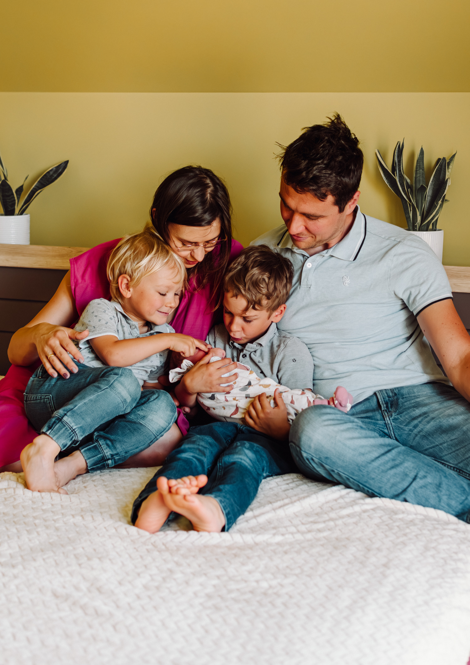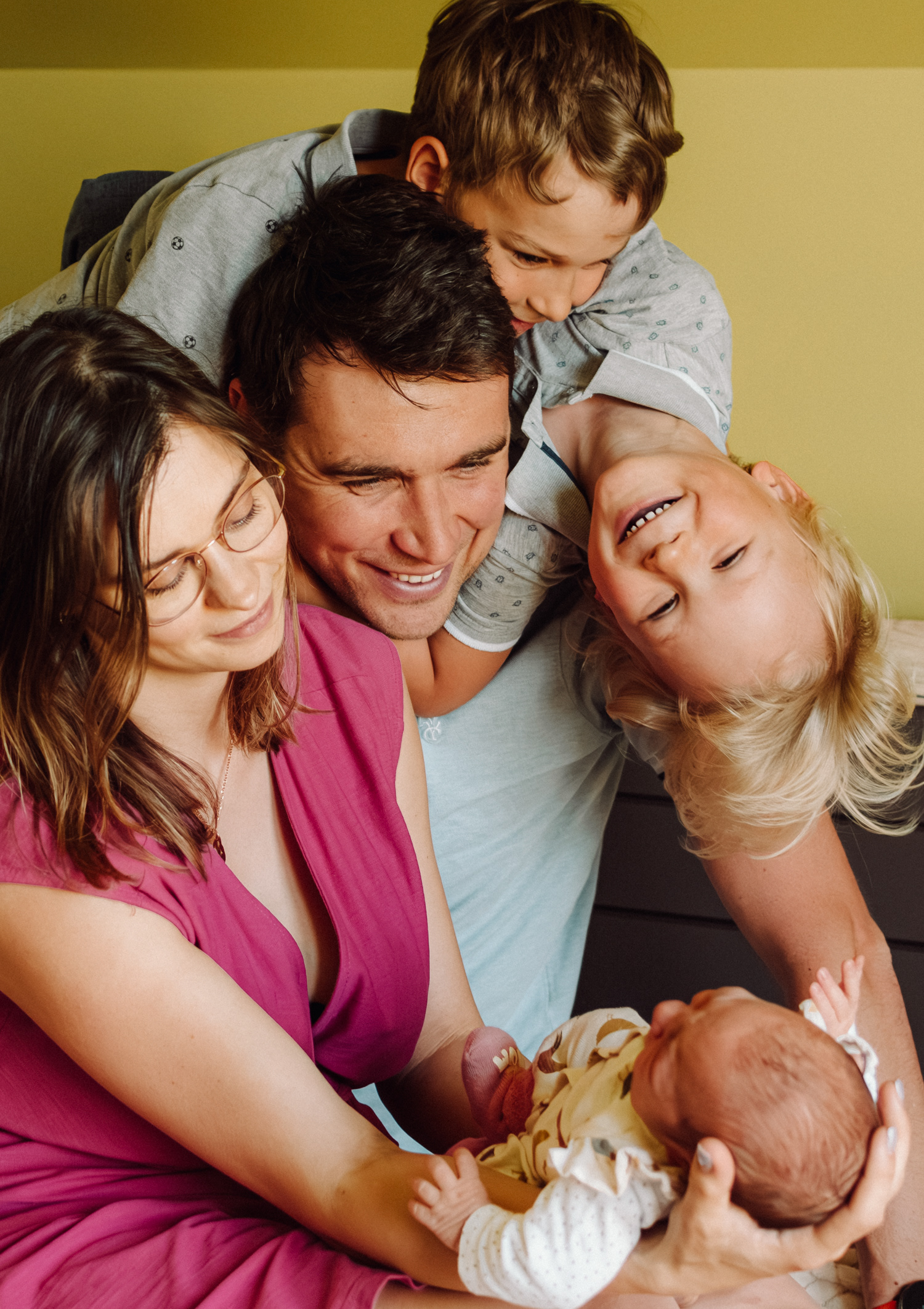 Sesja noworodkowa i starsze rodzeństwo? Proszę bardzo! To piękne kadry pełne energii - jednak tutaj rządzi starsze rodzeństwo.